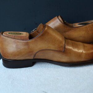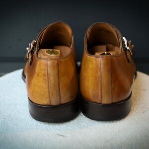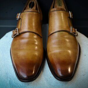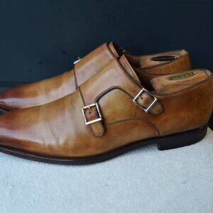 SALE - Magnanni 9-M Brown Double Monk Stap Burnished Mens Dress Shoes