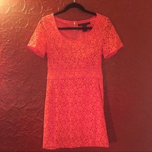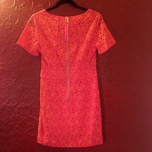 Marc by Marc Jacobs Luna Lace Dress. Lace with tonal underlay and trim. Wide scoop neckline. Back zipper. Length approx 35". Tag says "vibrant red" but actual color is more of an orange.