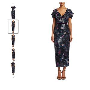 SALE Marchesa Notte Cap Sleeve Sequin Floral Dress NWOT