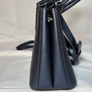 This Michael Kors crossbody bag in a striking blue hue combines style and practicality. Featuring a detachable and adjustable strap, it offers versatile carrying options. The bag's sleek design and gun metal toned hardware make it a chic accessory for any occasion.