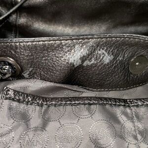 Exterior: Crossbody strap, double leather chain straps, silver-tone hardware and the MK medallion hang tag
