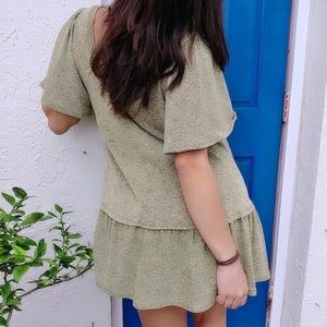It's a gorgeous green dress in size large. I bought it from a lovely boutique, but I got it in too big of a size. Is lovely as a dress if you are a medium.NWOT. Never worn.