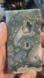 Moss Agate Crystal Slice With Druzy! It measures 3 3/4 inch tall and 2 inches wide.
