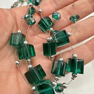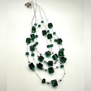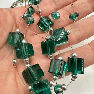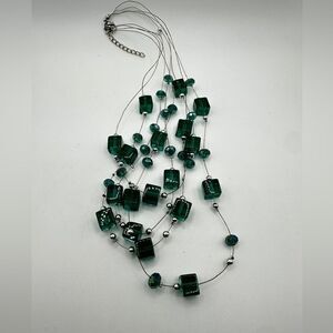 SALE! Multi-strand wire, Green Square and Faceted Glass Beaded Necklace!