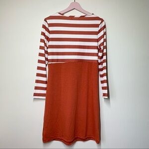 Burnt Orange and White Long Sleeve Dress with Waist Tie Approx Measurements: -armpit to armpit 18" -waist 17" across front -length 36" NEW WITH TAGS