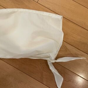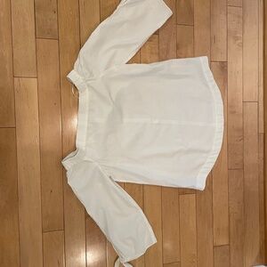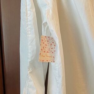 ☀️SALE☀️ FREE PEOPLE White off the shoulder blouse. Elastic at shoulders and back with 3/4 sleeves with ties and rounded hem. Color: White. Size Small. 100% cotton. Condition: NEW With TAGS.Note: Last photo is a stock photo to show fit.