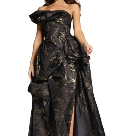 Product Details: Strapless, Ruffle Details, Slit, Train