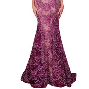 SALE NWT Portia and Scarlett PS25251 Lace Prom Dress Fuchsia Nude Size 4