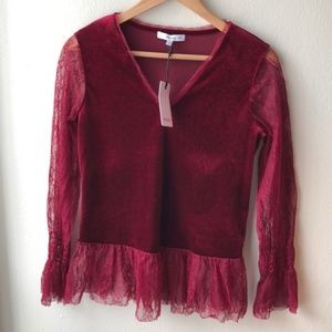 SALE NWT RO&DE Burgundy Velvet Long Sleeve Blouse
