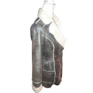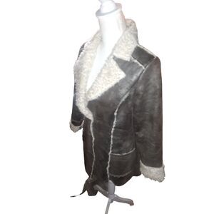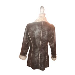 SALE! NWT- Size Small MonoReno Faux Sherpa Lined & Leather Brown Snakeskin Coat