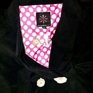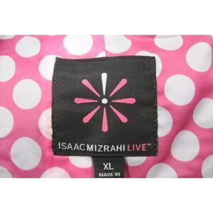 SALE!!! New with tags and metals still wrapped for protection. Isaac Mizrahi Live! XL Ladies Weather Resistant Double Breasted Black Trench Coat with Gold Tone buttons - still wrapped for protection Pink cute polka dot lining. Sophisticated Designer Double Breasted Belted Fully Lined Trench Coat - Raincoat