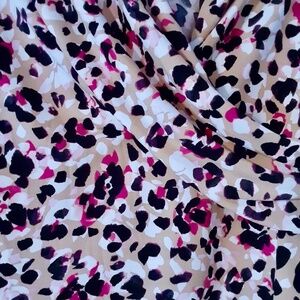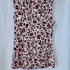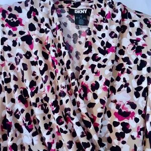 This new with tags DKNY blouse is an animal print accented with shades of black, white, and pink. Sz M.