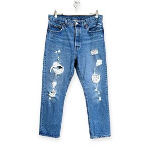 ☀️SALE☀️ New Levi’s 501 High Rise Straight Jeans Dark Indigo Destructed Size: 29