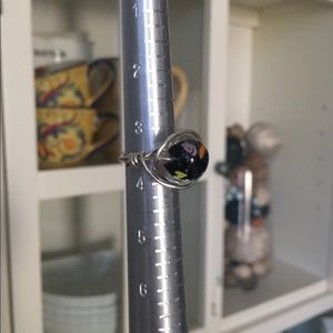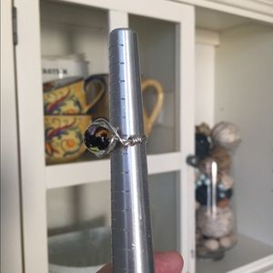 Gorgeous handmade wire wrapped ring with silver plated copper artistic wire around a lovely blown multi color glass bead. If you are supersensitive to different metals all you have to do is simply coat the interior (the skin side) with a clear non-toxic clear lacquer which I am more than happy to do prior to shipping or you can do it yourself π this works for all jewelry that is not sterling silver, stainless steel or premium golds π thank you for browsing my closet Happy Poshing!! πππ
