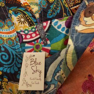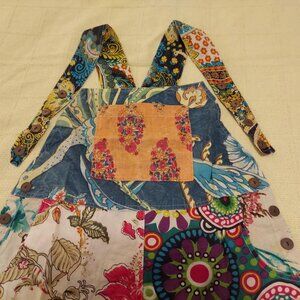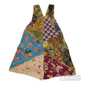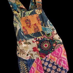 Bold and vibrant creating a retro style. Looser fit with pockets and adjustable button straps.