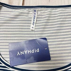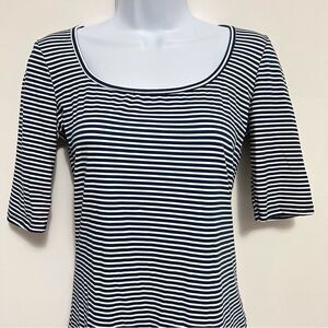 SALE!! P!phany Blue And White Striped Round Neck Elbow Sleeve Tee NWT XS