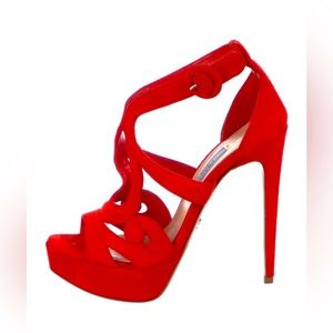 SALE Prada Red Suede Open Toe Baroque Platform Sandals Size 35.5