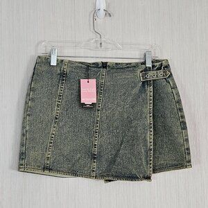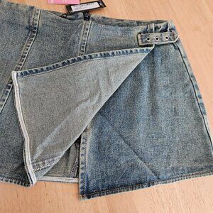 SALE Prettylittlething PLT Vintage Wash Denim Wrap Over Mini Skirt - sz US 6 NWT