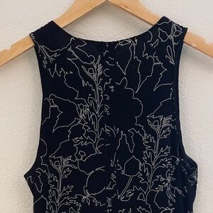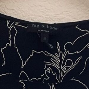 ☀️SALE☀️ RAG & BONE Patricia 100% silk sleeveless medium height tunic top. Hi-Low hem (Higher in front, lower in back). High neck and low-cut armholes. Color: Black with Ivory pattern. Size: Medium. Condition: Good; gently worn. No stains, tears, marks or holes.