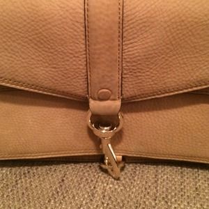 A little less than a year old, some wear you can see in pictures two and four. A sophisticated Rebecca Minkoff shoulder bag is clad with wrinkled leather panels. The push lock flap open to the logoed line interior with three pockets. Optional shorter strap. Dust bag included. Leather is cowhide.