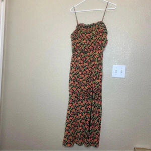 *SALE* Regal Floral-Print Shirred Sleeveless Dress with Slit size Large