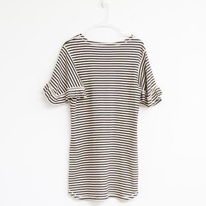 SALE SEE BY CHLOÉ Striped Jersey Dress Ruffle Sleeve Beige L