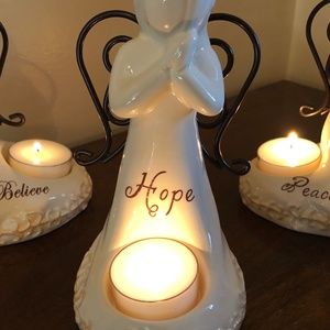 ✨SALE Set of 3 Angel Porcelain tea light Candle Holders Believe Hope Peace NIB