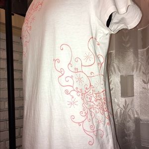 Designed and screen printed by me. This is a peach/orange swirl design on a soft, white t-shirt. Never worn. Design is slightly imperfect, adding to the character of the tee! (Back of the shirt is blank) Originally was supposed to open a t-shirt design shop, but plans fell through. Now it can be yours for a pretty good price!