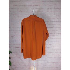 Elevate your wardrobe with this Stafford wrinkle-free button-up shirt in a striking orange hue, perfect for a retro-inspired or bold modern aesthetic. Crafted from a comfortable cotton blend, this shirt in size 16 1/2 (neck) with sleeve length 32-33 offers both style and convenience. Ideal for work or casual outings, it delivers a sleek look that resists wrinkles, ensuring you look polished all day. In very good condition, this shirt is a versatile addition to any wardrobe.