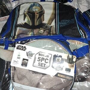 NEW with tags and in Box Star Wars Mandalorian Baby Yoda 5 Piece Backpack and Lunch bag Set Kid Size - PLUS Mandalorian FUNKO POP - Ready for school! This is a Star Wars The Mandalorian 5 Pc Set The Child Keychain Backpack New with Tags. It includes the backpack, Lunch bag, cinch sack, rubber dangle (keychain) and a zip case (pencil case).