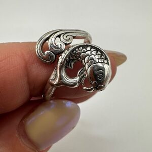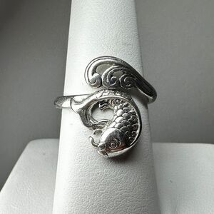 SALE! Stunning silver plated koi fish and wave ring, size 7!