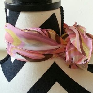 Multiple ways to wear and use this scarf to add instant color to any outfit or handbag. Gorgeous! *purse not included* Slight snags throughout scarf, but not noticeable when worn.