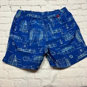 🔥SALE TWO PAIRS Lands End Mens 6” Swim Trunks Blue Orange size M Sailboat A373