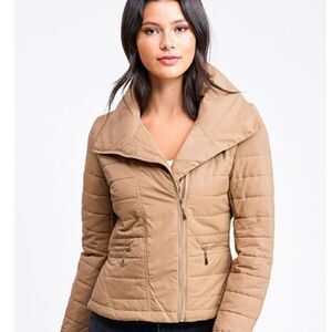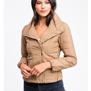Very cute and trendy! Lightweight puffer coat/jacket in tan.