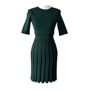 📸 SALE Ted Baker Forest Green Knit Skater Dress XS – Sculpted Pleats
