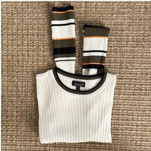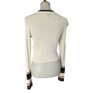 📸 SALE Topshop Ribbed Knit Sweater White with Striped Cuffs – Size US 8