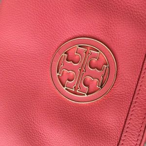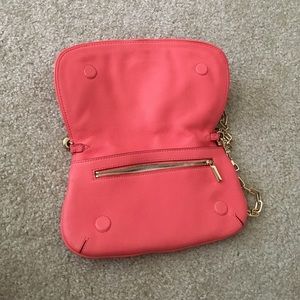 Stunning vibrant Tory Burch cross body bag. The chain can be removed and the bag can be used as a formal clutch. This bag is in EXCELLENT condition since I only used it for special events/occasions. No scratches or tears. The lighting of pictures makes it look pink, but it's more coral. I can send more pictures upon requests
