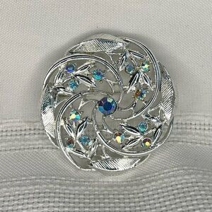 💥SALE VTG AB Brooch Round Silver-tone EUC