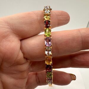SALE! VTG Multi-gemstone cuff bracelet in gold tone over stamped .925!