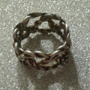 Vintage, Thick Chain, Band Ring, Set in Solid, 925 Sterling Silver w/Crevices being Oxidized, Size 6. Comes w/an Anti-Tarnish, Polishing Cloth & Gift Box. 6 grams weight.