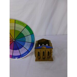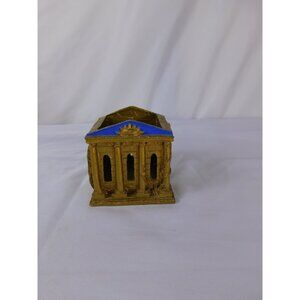 Vintage Temple Ruins Pen Holder Desk Caddy Gold Blue Resin Architectural Decor