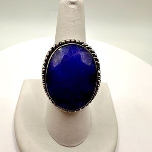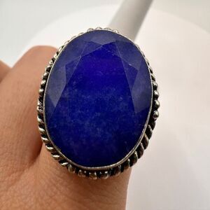 SALE! Vintage, huge lapis lazuli in stamped .925 ring!!