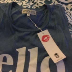 NWT Perry Winkle blue wildfox shirt that says, 'ello. Authentic.