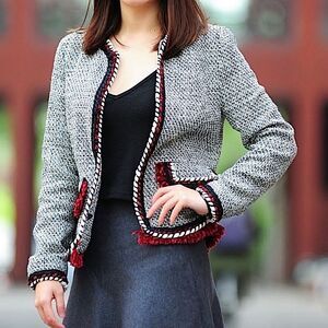 Zara Blazer Tweed Cropped Jacket Fringe Trim Size S