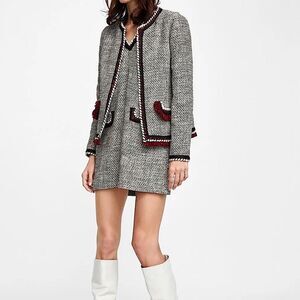 SALE 🔥 ZARA Cropped Blazer Tweed Jacket Pockets Size S • BLOGGER FAVORITE •