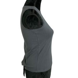 Sweet, soft and sassy tank features fun back cutouts accented with a drapey tie at the bottom.