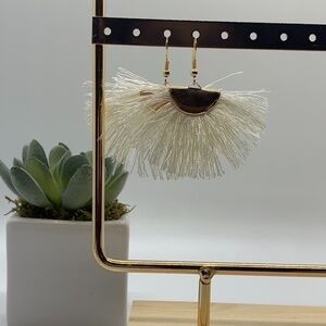 SALE💚 any 3 for $18 💚 White Fan Tassel Gold Earrings Statement