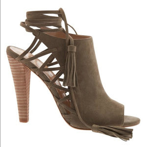 Size 8 beautiful military green suede strap heels. They are like new i only worn them twice, this are gorgeous heels! LOVE THEM! But I don't ever really get to wear them.