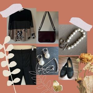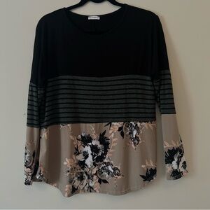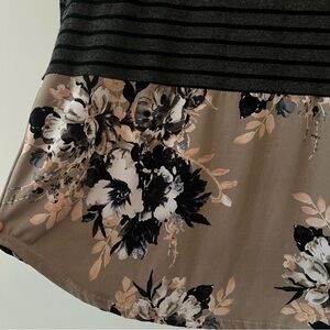 Black Top + Grey and Black stripe mid section + Light Mocha floral bottom