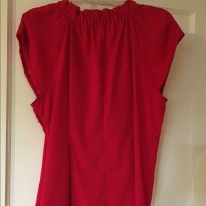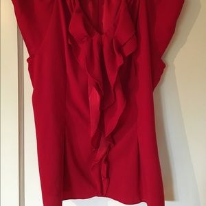Gorgeous red express blouse. Ruffled in the front. 96% polyester 4 % spandex. Machine wash cold, tumble dry low.